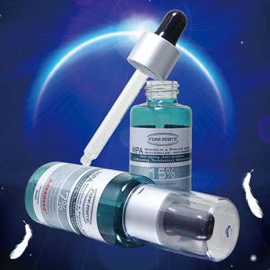 杏萄酸除了用於換膚療程外,也有製作成較低濃度的居家保養用精華液,日常使用可調理角質、皮脂腺及粉刺,讓痘痘消得比較快,並預防新痘痘的產生。同時,可增加皮膚的耐受度,讓換膚療程的濃度提昇,作用時間增加,進一步提高換膚的療效。