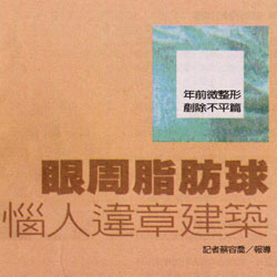 蟹足腫體質 避免雷 對眼睛外觀在意者,有不少會定期治療眼部脂肪球反覆發作的問題。包活為了上妝拍照好看的模特兒、經常洽談生意的台商等,平均每半年都會回診一次。不過有蟹腫體質者,建議應避免接受雷射手術。 案例故事:40歲的蓮兒身材、外型亮眼,卻有一個多年困擾,就是從國小五年級開始,她眼睛周圍開始長出一顆顆白色凸出的小肉球,每顆大小約0.2到0.3公分,而且一直無法消失,只要作息一不正常,還愈發明顯,讓她在意不已。 作息不正常 馬上長出來 面對這些難搞的脂肪球,有人說是遺傳、也有人說是因為擦了太油膩的保養品,蓮兒之前也曾在醫師建議下忍痛做了電燒,但半年多後,脂肪球又長回來。「臉上有斑可以擦遮瑕膏,但脂肪球愈擦粉愈明顯!」 蓮兒說,她家有四個姊妹,只有她的眼睛周邊長滿脂肪球,她不敢擦滋潤型眼霜,也沒辦法上太濃的妝。三年前到醫學中心皮膚科治療,醫師說可以用電燒分次去除,得在眼睛周圍放射狀施打麻醉針,但將十多顆脂肪球一顆顆燒掉,讓她痛到飆淚;做了兩次療程後,她嚇到不敢再去,原本稍稍消失的脂肪球,又開始一顆顆冒出頭來。 種類大不同 別亂擠亂塗 高雄市皮膚專科醫師林政賢指出,這種「眼睛周圍的脂肪球」,是由正常皮膚增生出來的,主要可分為肉芽、扁平疣和汗管瘤等三大類,另外還有外觀呈片狀的黃色瘤,以及有如小粉刺的粟粒腫。 1.汗管瘤:是因汗管在真皮層過度增生,而在皮膚表面形成的良性瘤,患者進入青春期就開始增長,在眼睛周圍形成為數不少的「違章建築」。多與體質、遺傳有關。 林政賢說,因眼部脂肪球求診者,成因和治療方式、療程都不盡相同,且各年齡層都有,但因為與遺傳相關,大多從青春期起開始出現。坊間傳言不要擦太厚保養品,或可將脂肪球當成粉刺擠出等說法都不正確,須經皮膚專科醫師診斷後才能判定,免得對眼部皮膚造成不當傷害。 治療方式 冷凍或雷射治療 扁平疣使用藥物治療一段時間即可;肉芽和汗管瘤須使用「汽化型」方式,如液態氮(冷凍治療)、二氧化碳雷射或鉺雅鉻雷射等,將皮膚表面增生部分消掉。不過依皮膚增生深淺程度,有人打一次就大功告成,有人則須每兩個月回診,進行二次到六次療程。 價格依患者眼部周遭的脂肪球多寡,一次雷射價格約2千到3千多元,每隔兩個月治療一次,二到六次可達到治療效果。 維持時間 數年或數個月 曾有40歲媽媽眼睛下方長了肉芽就醫,本以為是擦了太滋潤的保養品所致,其實兩者根本沒有關聯。林政賢坦言,肉芽及汗管瘤即使治療了,也會在一定期間內「春風吹又生」,有人可維持數年之久,也有幾個月後就回來找醫師報到的案例。即便如此,仍不可為求效果一次打太深,否則反而留下疤痕。 復原期間 一至兩周不等 病毒性扁平疣,只要塗抹外用藥膏一段時間即可治療;肉芽及汗管瘤則須一到兩周復原時間,期間內必須做好傷口護理及防曬,避免復原後留疤及色素沉澱 延伸閱讀 [文章]如何消除「菜花」 [文章]少年皮膚的煩惱 [文章]雞眼?胼胝?還是疣? [文章]麻將3缺1 摸出病毒疣