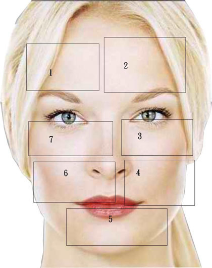 1. 若為全臉注射時,將分作約7-8個區塊,並於表面敷麻醉藥膏。