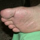 於是我說:「媽媽!您不必緊張。小朋友這是得了『青少年足底皮膚病』。這是一種還算滿常見的皮膚病。它不會傳染。通常最慢在青春期左右就會自動痊癒。」給予適當的藥膏治療後,患者接受後續的追蹤,會有相當程度的改善。