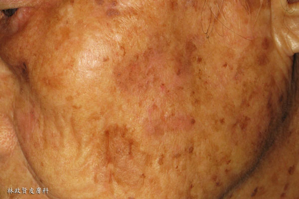 詢問之下,患者已務農了數十年,長期曝曬於大太陽底下。在詳加解釋後,經過幾次的治療,患者皮膚狀況恢復得不錯。